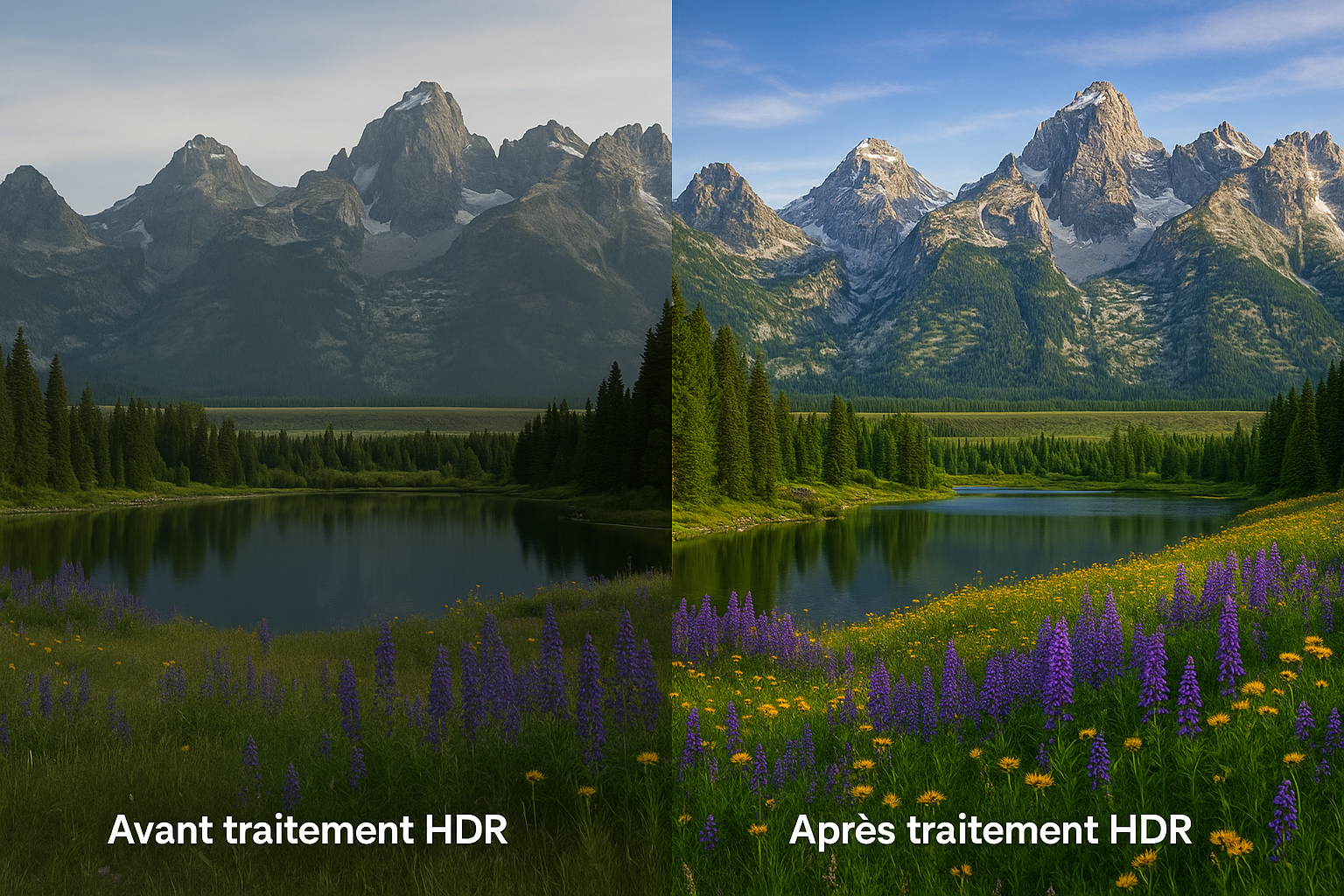 Le traitement HDR permet d’obtenir une image plus équilibrée et réaliste en révélant à la fois les détails des zones sombres et des zones très lumineuses.
