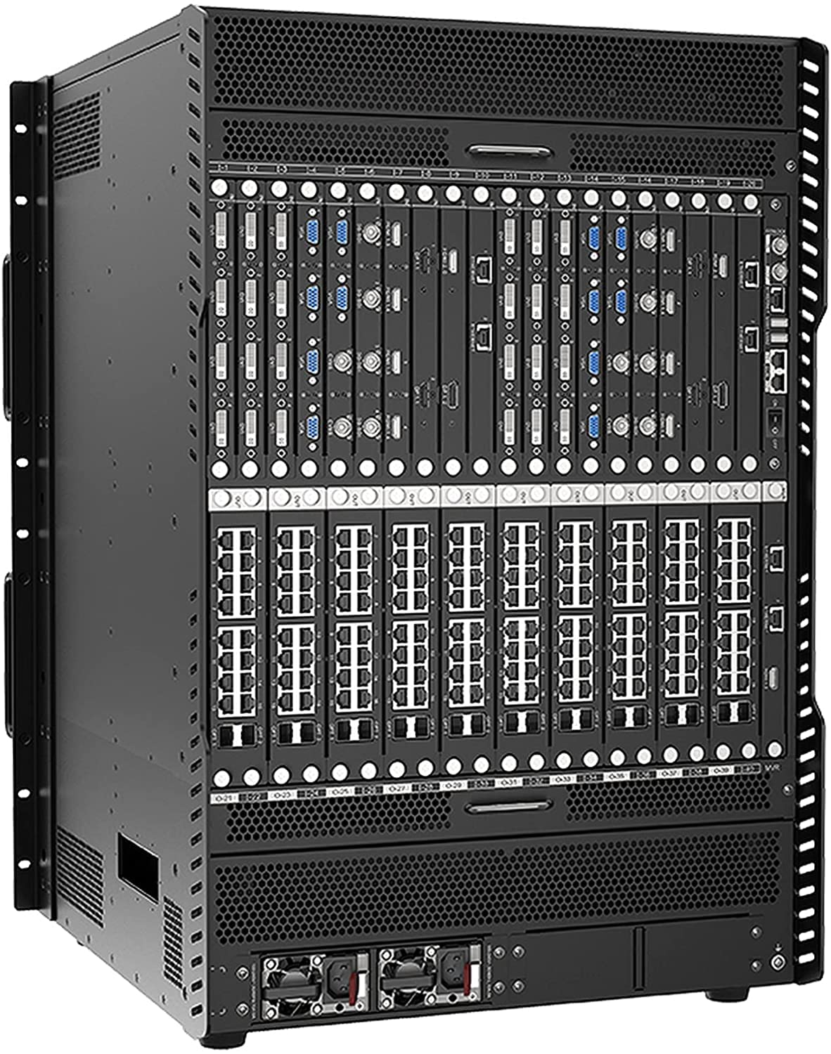 L'entrée vidéo HDMI 2.1 8K et le support intégral des standards HDR (HDR10/HLG) garantissent une clarté et une dynamique d'image époustouflantes. La connectivité est assurée par 16 ports Gigabit Ethernet et 4 ports optiques 10G, offrant une bande passante et une fiabilité maximales pour les signaux critiques.